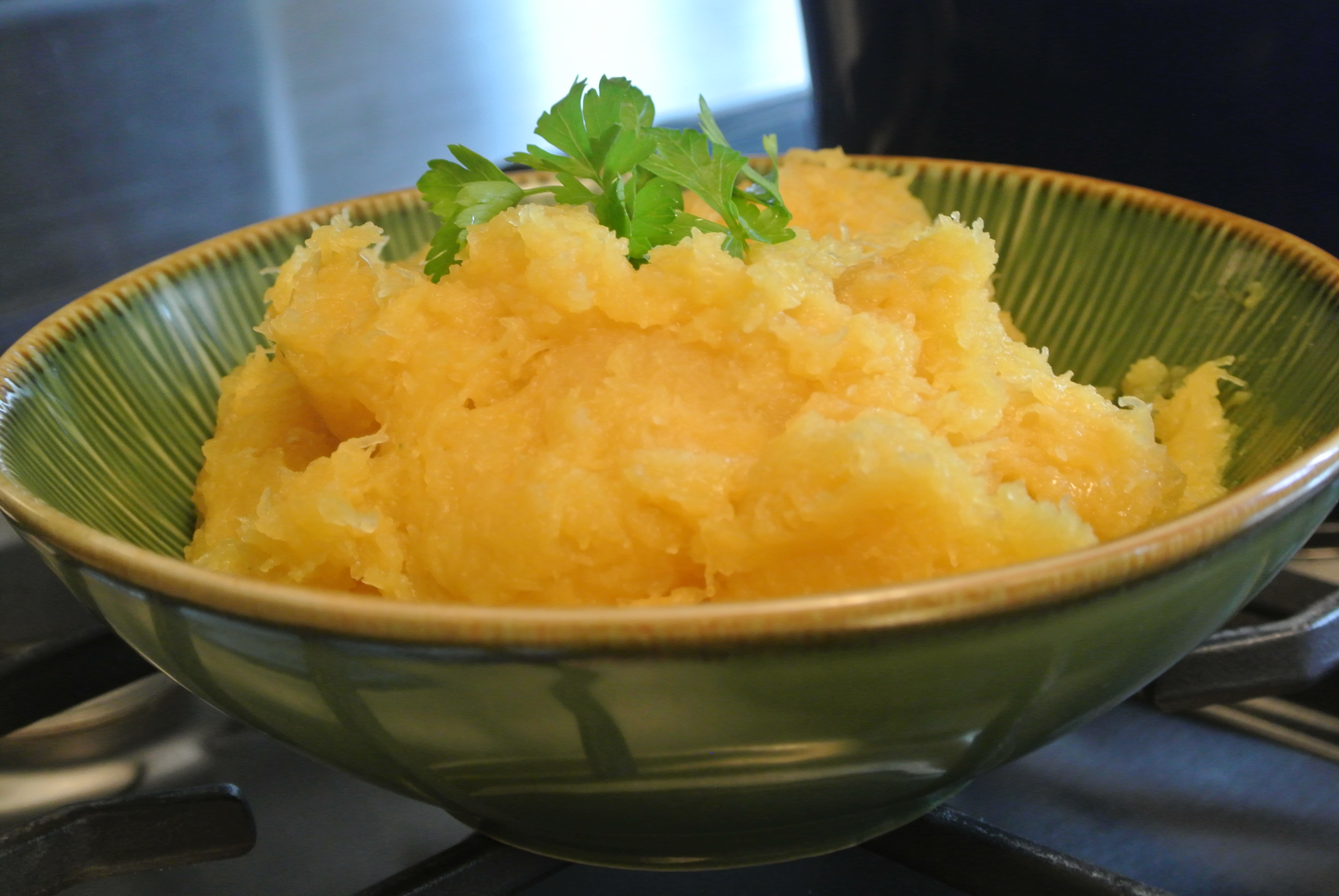 Bake Acorn Squash in Oven at 350 for an hour. Mash into bowl after adding Pastured butter with Garlic Powder, Salt and Pepper .. if you want to add some sweetness add Grade B Maple Syrup. Yum!!