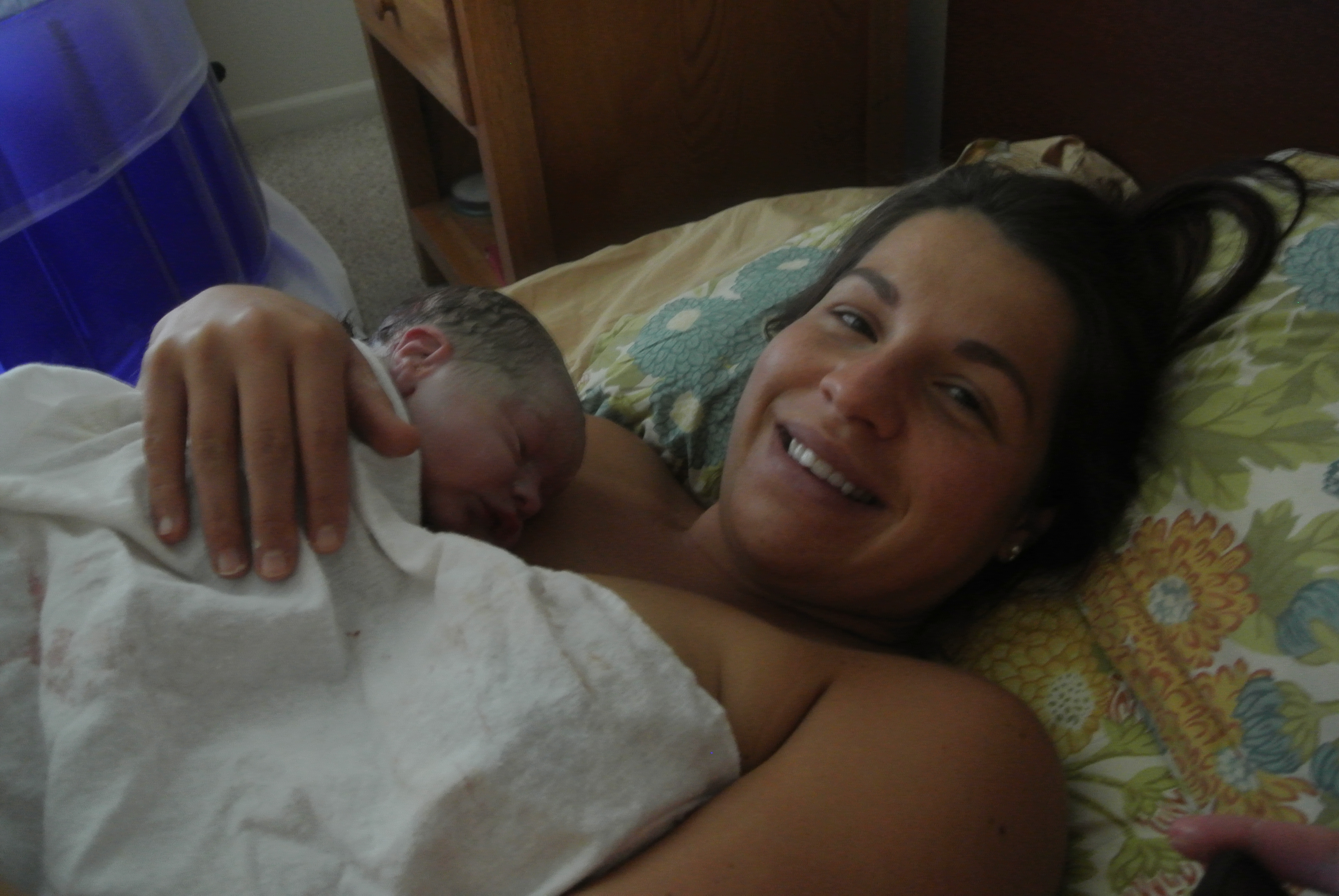 It was midnight on August 2nd when I turned over in my bed and felt a damp sensation below. My water broke one day before my due date. I was in shock that it was happening early because I was 11 days late with my Savannah. I had my husband call the midwives to tell them that my water broke, and she told me to get some rest and call when things start to progress. I labored throughout the night while trying to sleep. It was very exciting! I was more than ready to do this. When I got up in the morning, I had breakfast with my family before my father in law came to pick Savannah up. We were very grateful for family during this time. Knowing that our daughter was happy, and in good hands made me relax to the fullest. 🙂